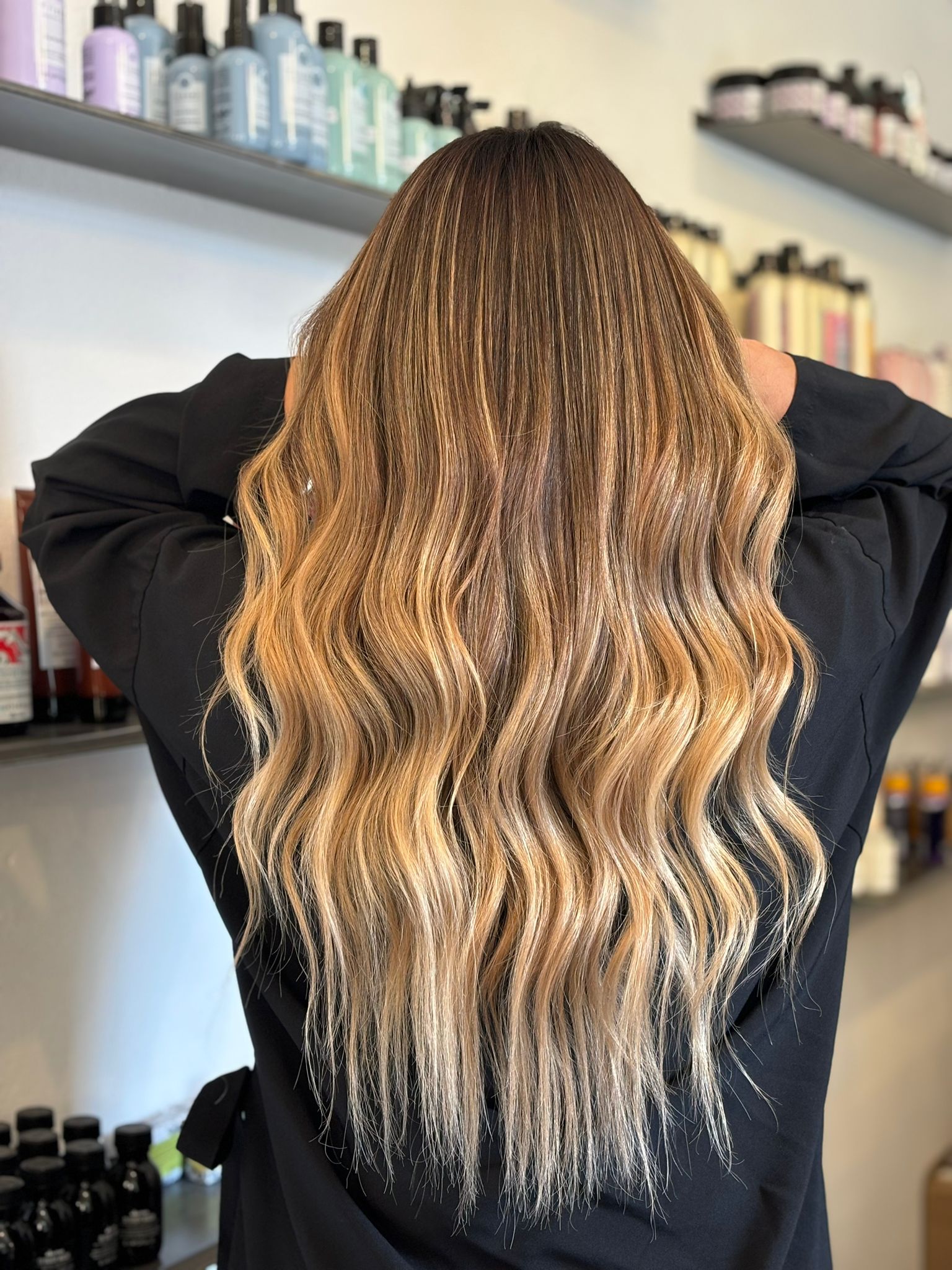 Una volta compresa la reazione dei capelli, la tecnica scelta è stata l’Airtouch, una delle più avanzate per ottenere sfumature naturali e durature.